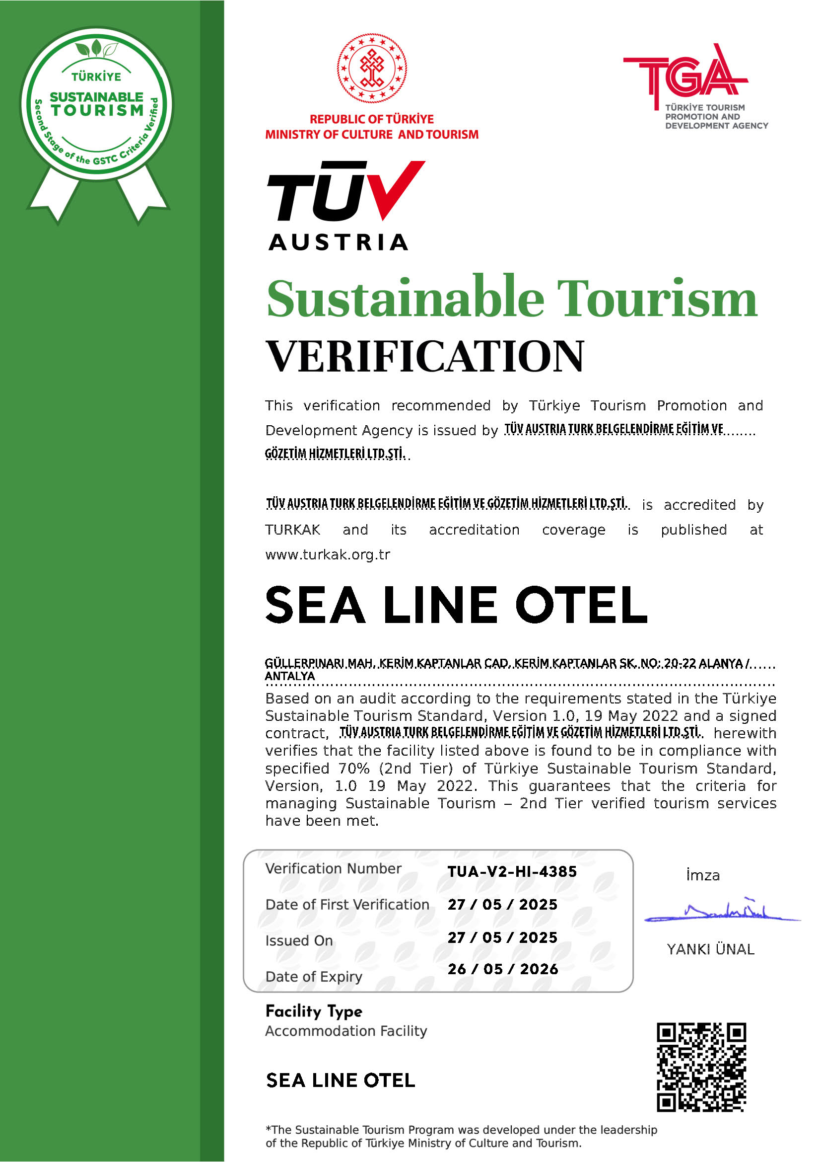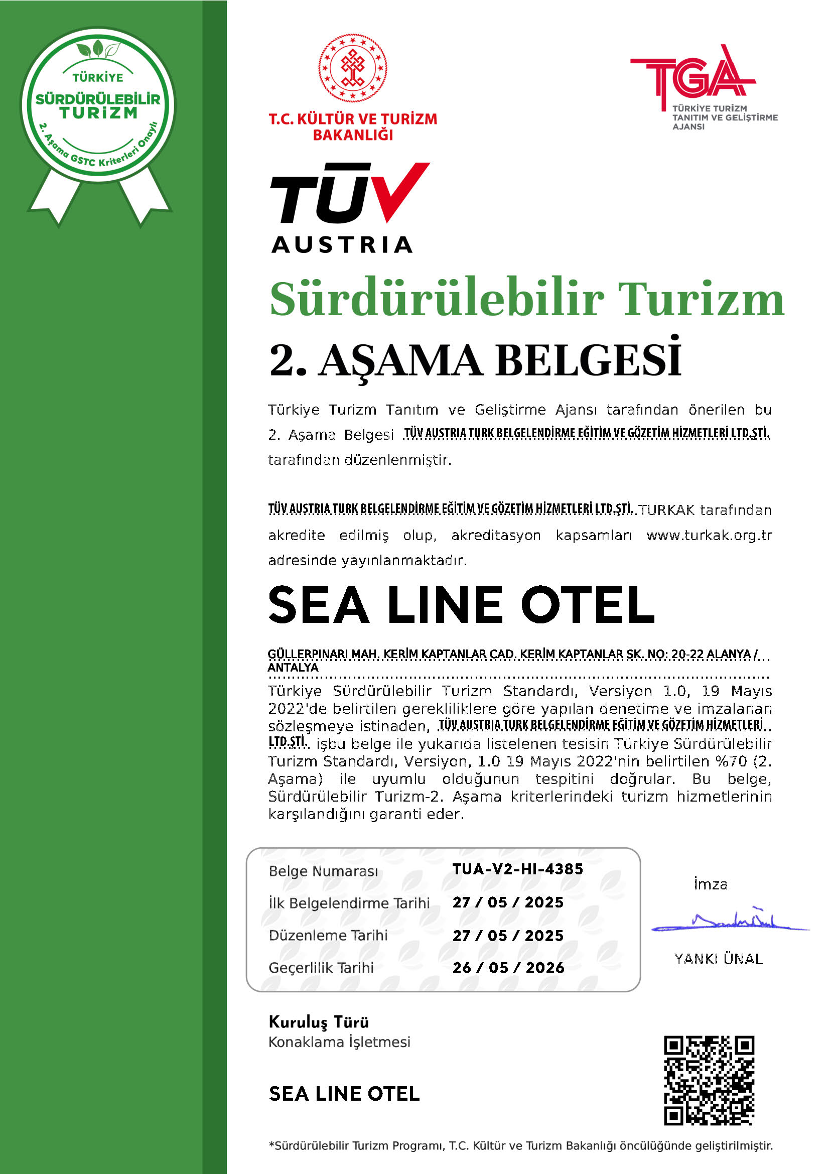 333 yatak kapasitesi, 114 Suit Odası bulunan Sealine Hotel'in tüm personeli sizleri ağırlamaktan onur duyacaktır.